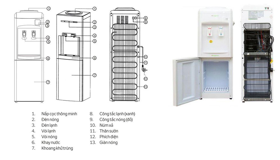 Sau khi nhấn vào công tắc, nước sẽ được làm nóng, làm lạnh và khi quá trình hoàn tất, cây nước chuyển sang chế độ giữ nhiệt, bấy giờ bạn có thể rót nước từ vòi để sử dụng.