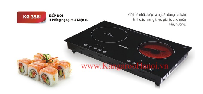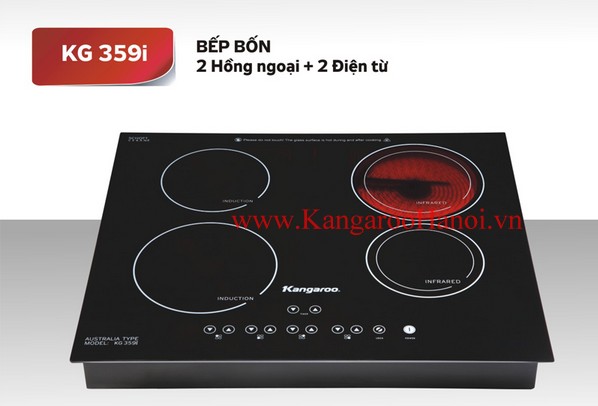 Với thiết kế đẹp mắt kết hợp giữa 2 bếp điện từ và 2 bếp hồng ngoại không những đem lại cho không gian bếp của gia đình bạn sự hài hoà hiện đại mà còn đưa đến cho bạn sự lựa chọn phương pháp nấu ăn ưng ý nhất. Model bếp điện từ Kangaroo KG 359i là sự lựa chọn hoàn hảo cho gia đình. Bếp có thể tích hợp được với mọi loại nồi trên thị trường.