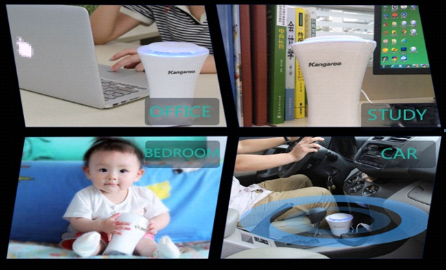 Máy lọc không khí cá nhân Kangaroo hiện có các dòng sản phẩm dành riêng cho Ô tô, cho phòng riêng. Với thiết kế nhỏ gọn, tinh tế, thì đây là một trong những sản phẩm nổi bật nhất trong phân khúc máy lọc không khí cá nhân hiện nay.