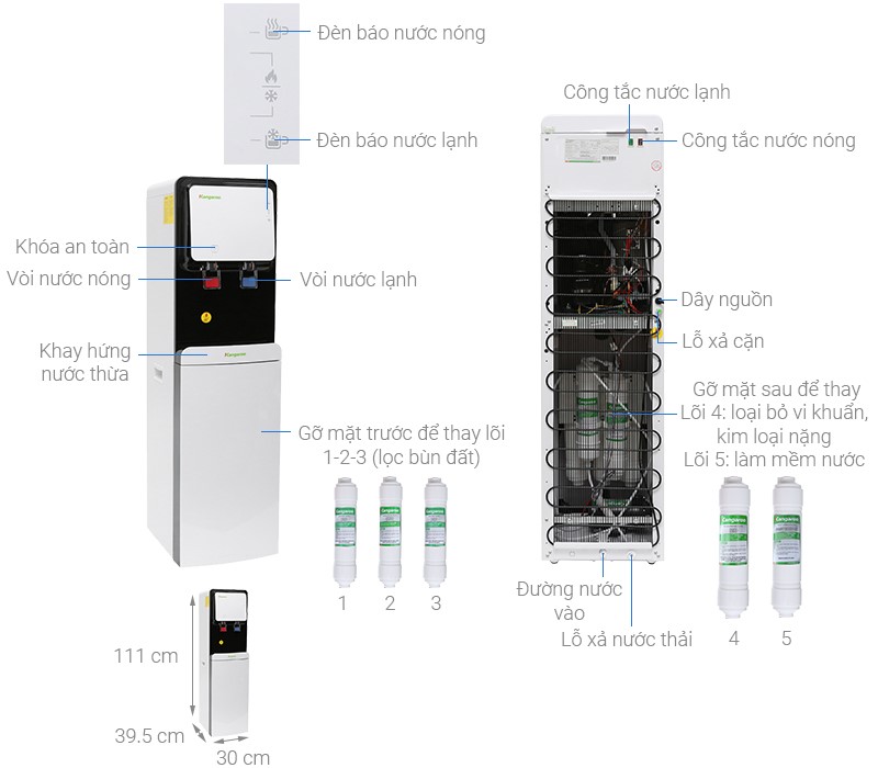 • Lõi lọc số 2: dùng để thay thế cho cây lọc nước nóng lạnh KG61A3