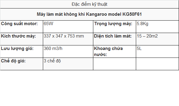 Tính năng tự động ngắt hoạt động khi thiếu nước, sẽ đảm bảo máy làm mát luôn được cấp đầy nước để làm mát và tạo độ ẩm trong không khí, giúp chống khô da, và các bệnh về mùa hè thường gây ra, đây cũng là một ưu điểm của máy làm mát không khí Kangaroo KG50F61 khắc phục được nhược điểm khi sử dụng máy điều hòa nhiệt độ.