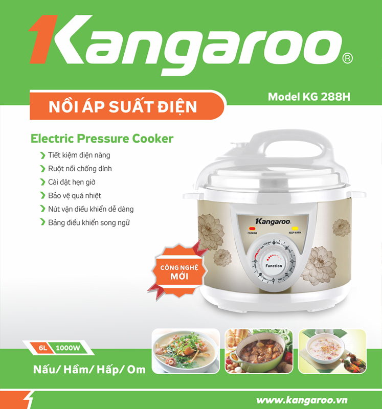 Nồi áp suất Kangaroo KG288H tích hợp nhiều chức năng (nấu súp, cháo, canh, ninh sườn, ủ ấm cho thực phẩm...). Dễ dàng sử dụng với chức năng cài đặt hẹn giờ. An toàn với bộ chống quá nhiệt ngăn ngừa cháy nổ.
