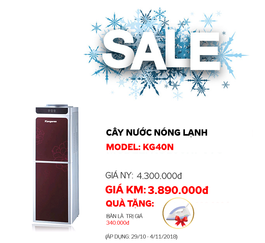 Sản phẩm được khuyến mại đặc biệt trong tuần (29/10 - 4/11/2018) là Cây nước nóng lạnh Kangaroo KG40N