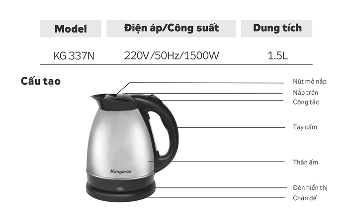 - Ấm đun nước siêu tốc Kangaroo