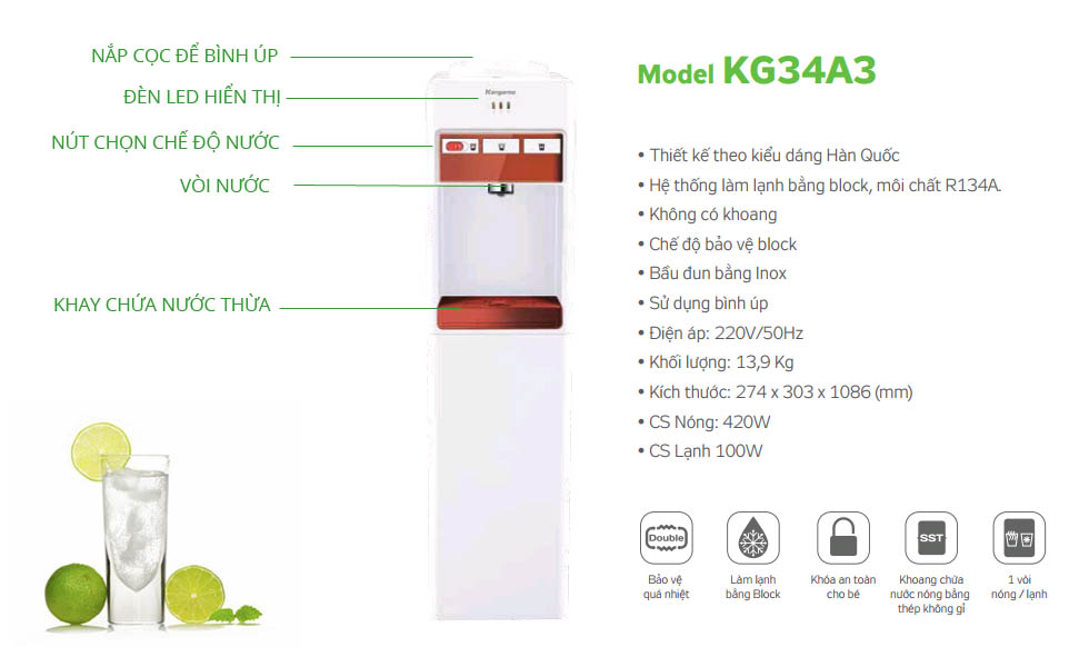 2. Thông số kỹ thuật Cây nước nóng lạnh Kangaroo KG34A3