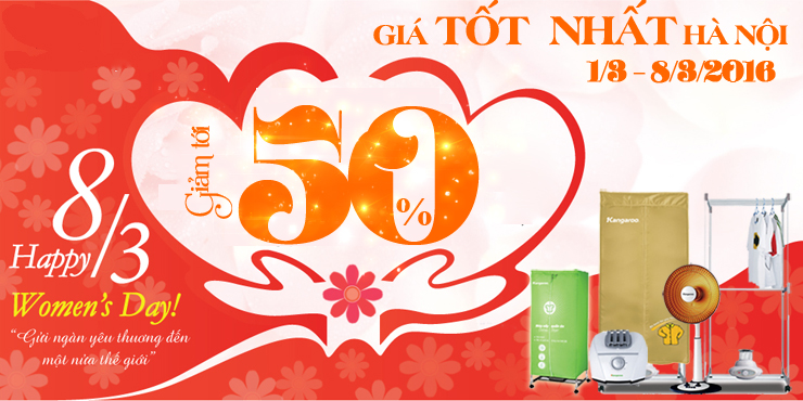 Chúc mừng ngày quốc tế phụ nữ 8/3/2016: Gửi ngàn yêu thương đến một nửa thế giới, kangaroohanoi.vn xin giới thiệu đến quý khách hàng chuỗi sự kiện siêu khuyến mại giảm giá lên đến 50%, TRONG VÒNG 8 NGÀY, TỪ 1/3 - 8/3/2016, kèm theo những quà tặng cực hot. Nội dung chương trình: