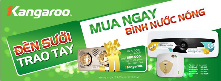 Chuẩn bị cho mùa đông sắp tới, và chào đón một loạt mẫu sản phẩm Bình nước nóng Kangaroo mới, KangarooHanoi.vn xin trân trọng gửi đến quý khách hàng sự kiện khuyến mại đặc biệt: "Mua bình nước nóng, tặng ngay đèn sưởi".