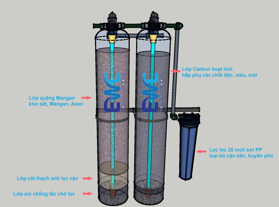- Cột lọc 1: Xử lý Sắt, Mangan,Asen