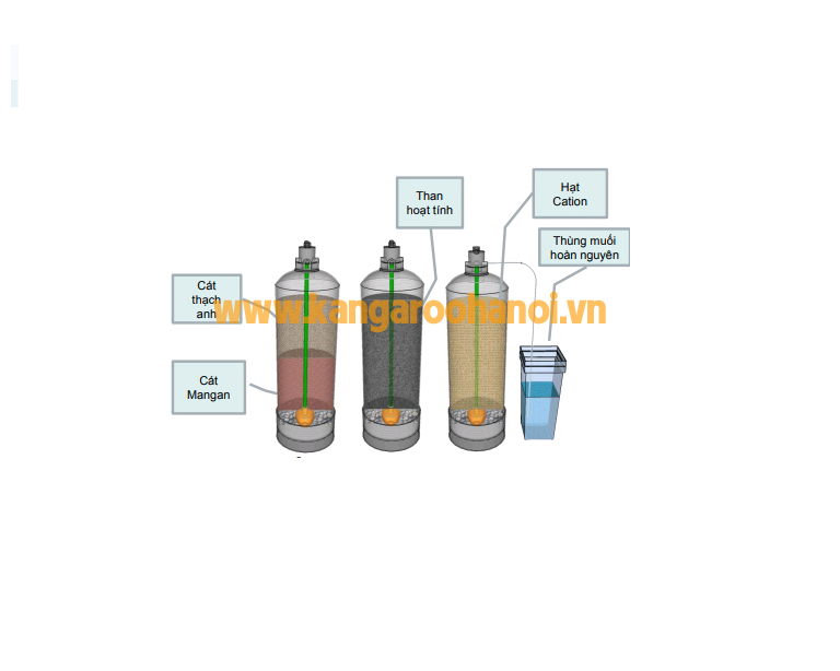 • Cột 1 gồm: Cát thạch anh + Cát Mangan. Công dụng: Loại bỏ cặn, làm trong Xử lý sắt, Mangan trong nước
