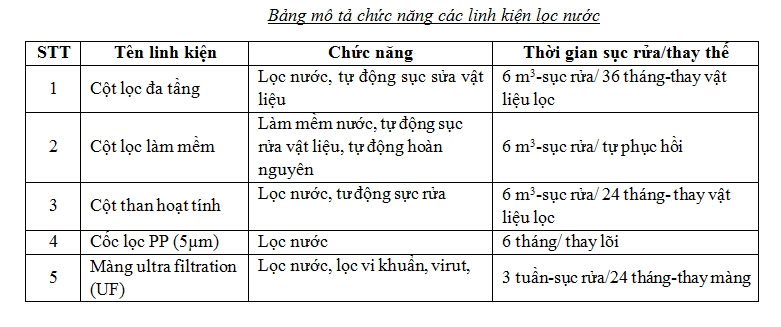 Với nước nguồn sử dụng là nước sinh hoạt cấp từ hệ thống nước thành phố, để đảm bảo chất lượng nước đầu ra cũng như khả năng vận hành của máy lọc tổng nên sục rửa màng UF sau 3 tuần sử dụng (tương đương 6m3 nước sử dụng)