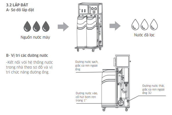 + Lắp đặt máy nơi có mái che, tránh nước phun trực tiếp vào máy