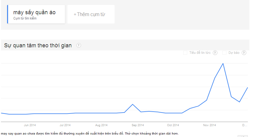 Biểu đồ xu hướng tìm kiếm về máy sấy quần áo của google trong năm 2014