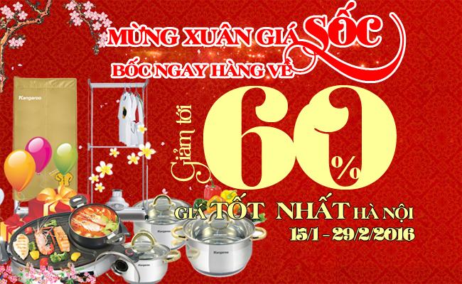 Chào đón xuân Bính Thân 2016, Kangaroohanoi.vn xin gửi đến quý khách sự kiện khuyến mại đặc biệt: "Mừng xuân giá sốc - Bốc ngay hàng về" Áp dụng cho các sản phẩm HOT với giá ưu đãi chưa từng có: giảm đến 60%, chỉ áp dụng từ 15/1 -29/2/2016.