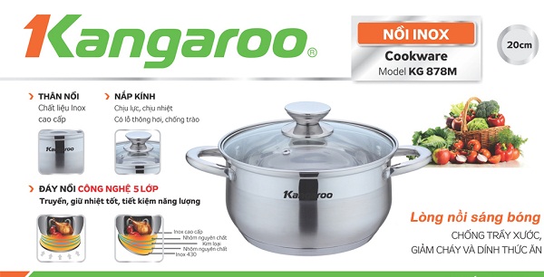 Nồi inox cao cấp 5 lớp Kangaroo KG878M với size cỡ trung bình 20cm chính là thiết bị nhà bếp không thể thiếu giúp bạn chuẩn bị những món ăn ngon cho cả gia đình.
