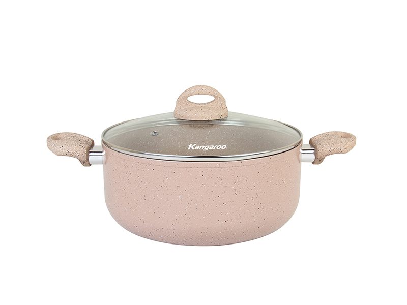 Nồi nhôm đáy từ KG933L vân đá hoa cương siêu bền, có khả năng chống dính, chống trầy xước. Tay cầm silicon cách nhiệt, giúp bạn không bị bỏng tay.