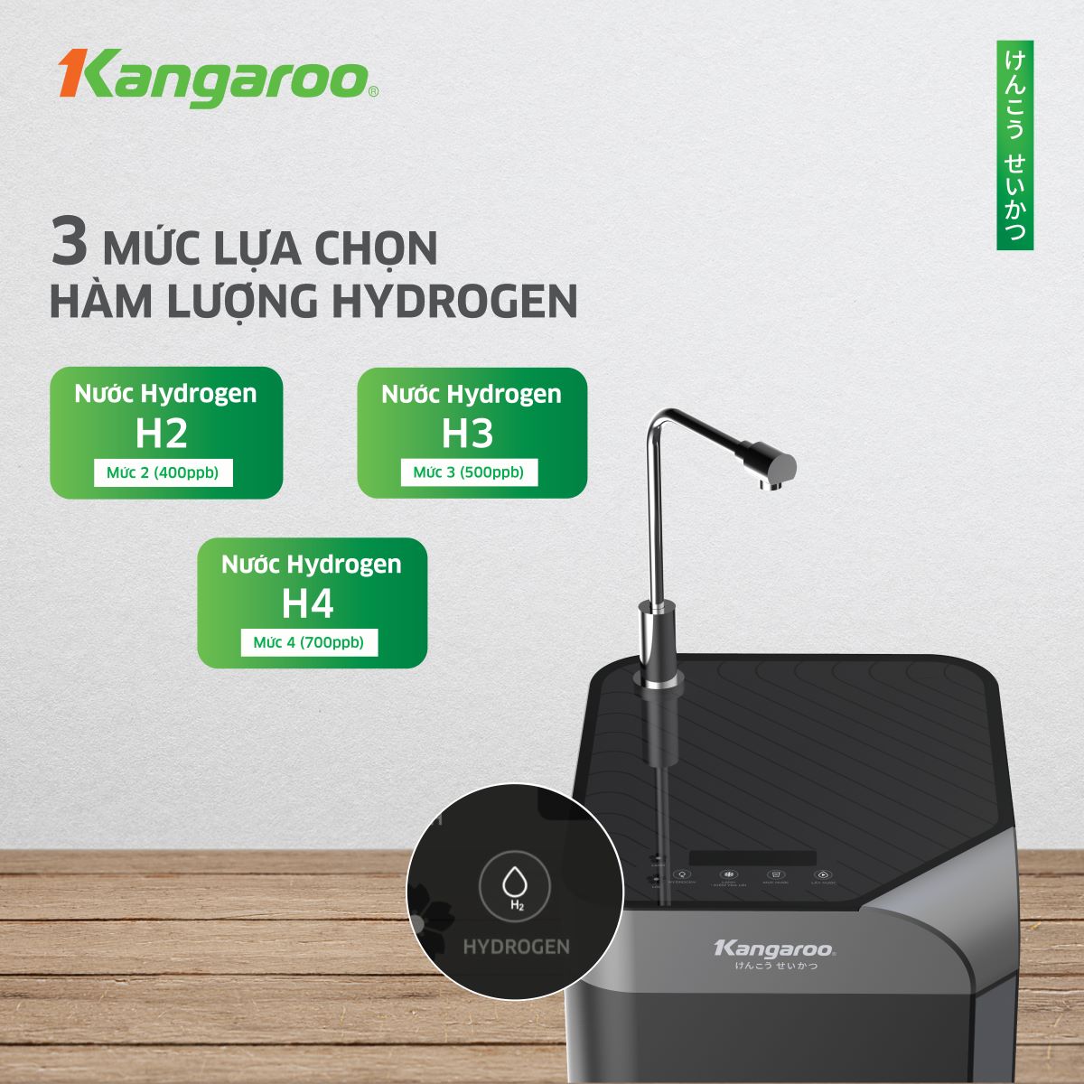 Chủ động sống khỏe: công nghệ ưu việt cho phép chủ động lựa chọn mức Hydrogen phù hợp với từng mục đích sử dụng. oại bỏ tác nhân oxy hóa và các gốc tự do nhờ đó hỗ trợ cải thiện quá trình lão hóa