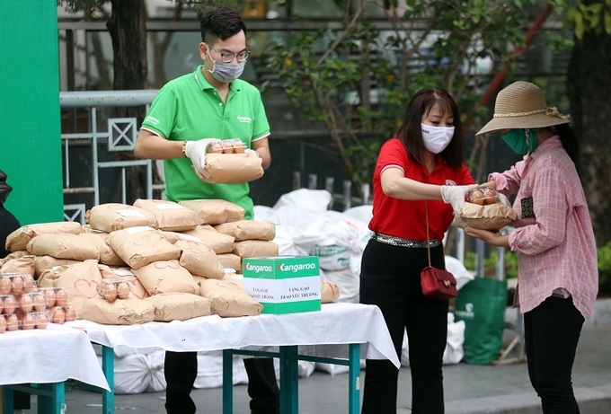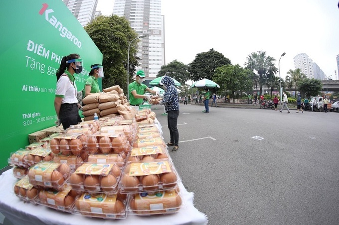 Điểm phát gạo và 30.000 quả trứng cho các hoàn cảnh khó khăn diễn ra tại quận Thanh Xuân ngày 19/4, do Tập đoàn Kangaroo quyên tặng.