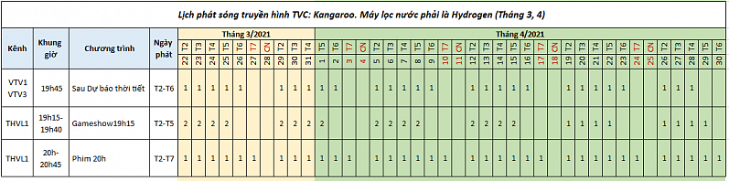 Lịch phát sóng TVC tháng 3, tháng 4 toàn quốc trên các kênh có lượt người xem đông nhất cho bộ sưu tập này được bắt đầu từ ngày 22.03.2021.